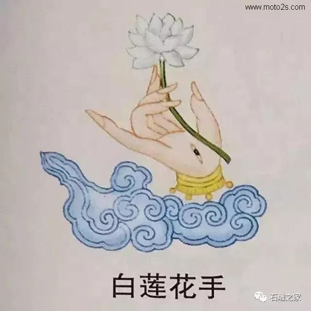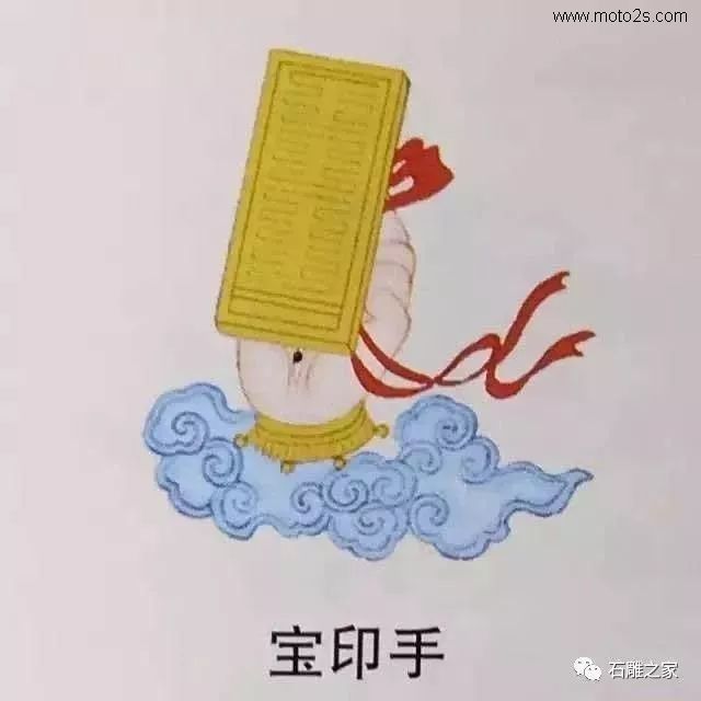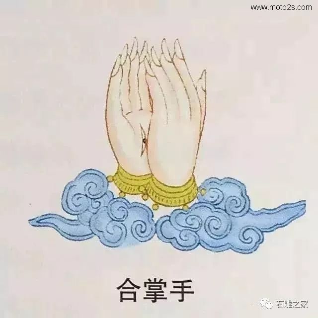 合掌手:双手合掌,表示礼敬众生,能令一切人和鬼神、动物敬重。