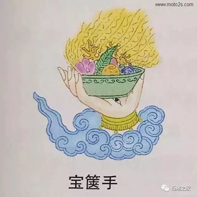 宝箧手:持宝箧,代表能得到大地中埋藏的一切保障。