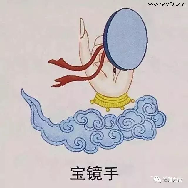 宝镜手:持宝镜,能令信仰者开慧眼,成就大智慧。