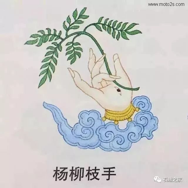 杨柳枝手:持杨柳枝,代表能除众生的种种病难。