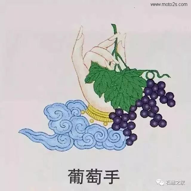 葡萄手:持葡萄,代表能使信仰者获得成就、成果。