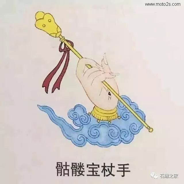 骷髅宝杖手:持骷髅宝杖,表示能降伏一切鬼神,护持佛法。