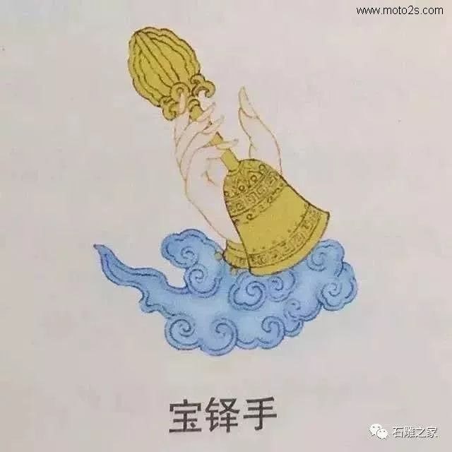 宝铎手:又称金刚铃手,持金刚铃,能使信仰者得佛之法鼓雷音。