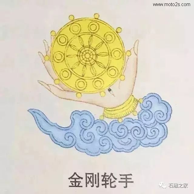 金刚轮手:持金刚轮,代表能使信仰者勇猛精进,不会生退隐之心。