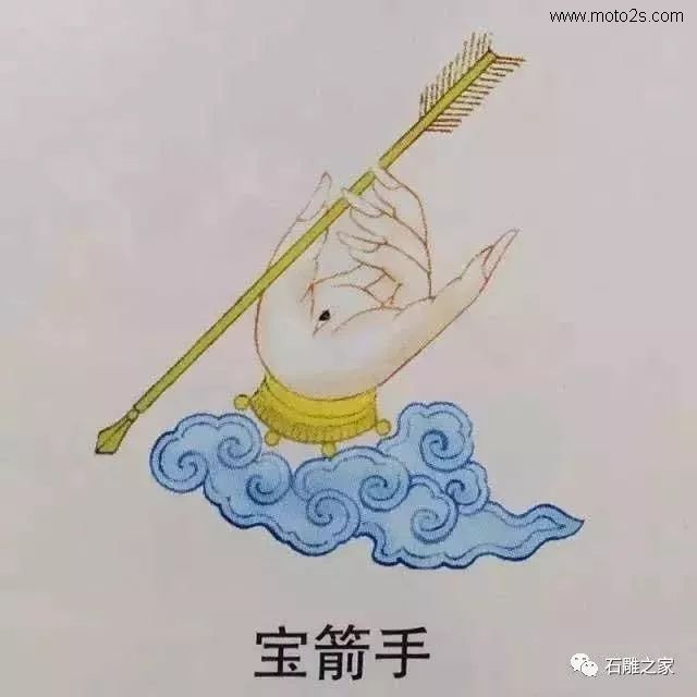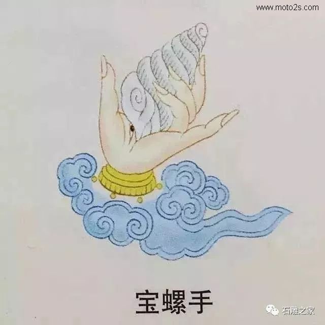 宝螺手:持白螺,表示能号令诸天神灭灾难。