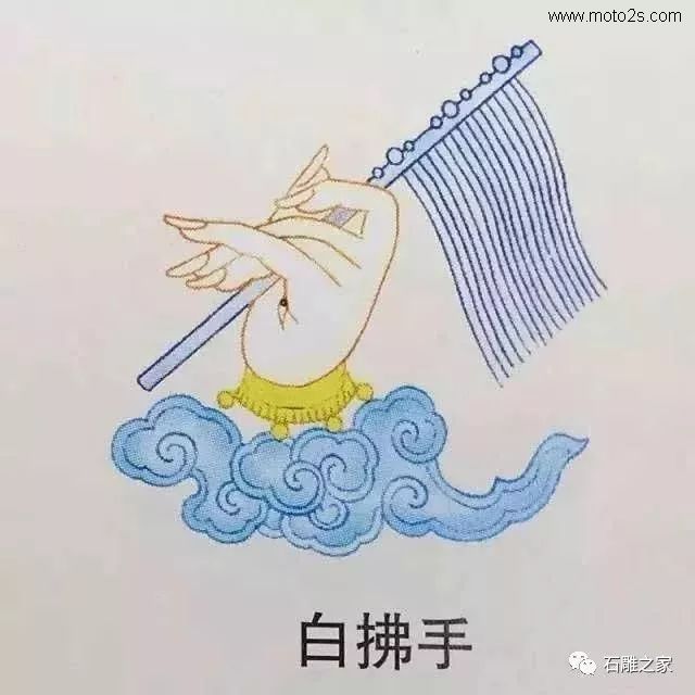 白拂手:吃白拂,表示能断除一切魔障,困难。