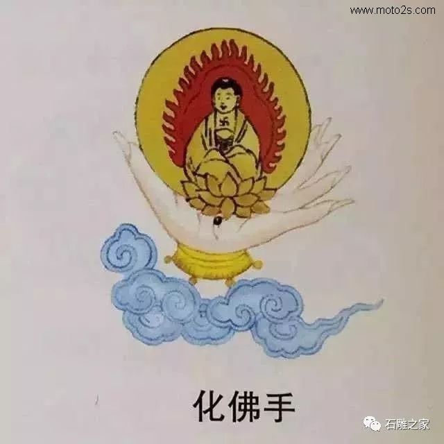 化佛手:手中托佛,代表能使信仰者生生不离佛。