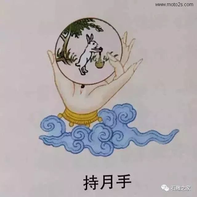 持月手:手托月精珠,珠是月宫里的水珠,可除热病。