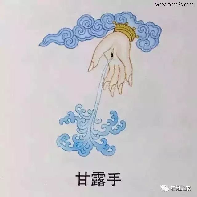 甘露手:手中洒甘露,代表能使信仰者得到清凉和宁静。