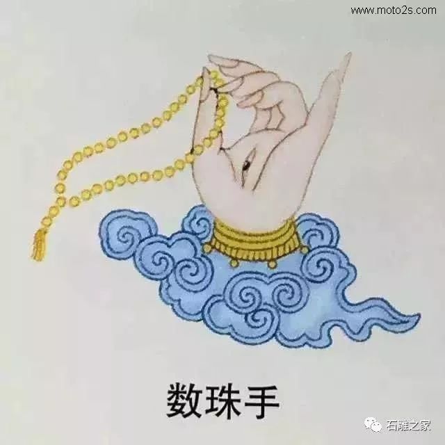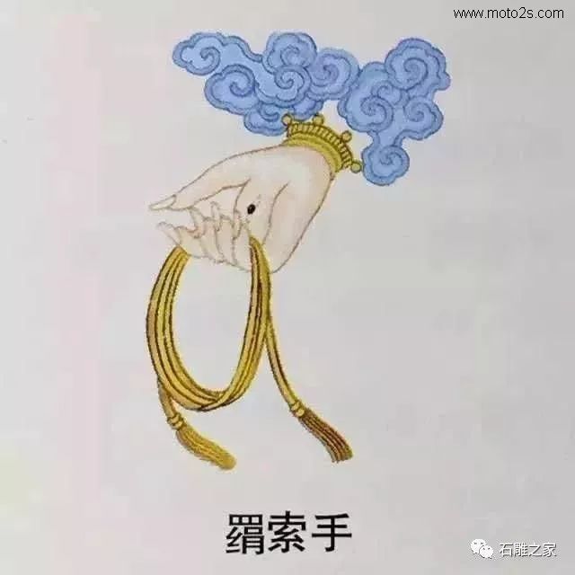 数珠手:持念珠,代表能使信仰者得到一切佛、菩萨的接引。