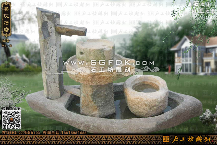 庭院水景石磨摆件
