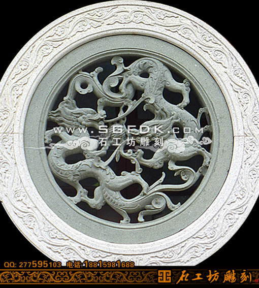 石雕双龙窗透雕窗图案