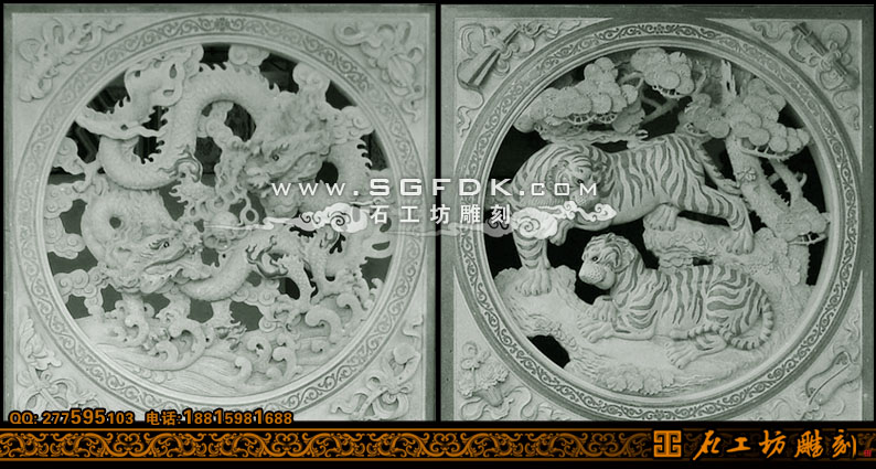 石雕窗透雕双龙双虎