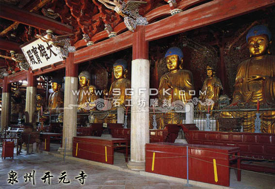 以福建佛寺为例,闽南最大的佛寺泉州开元寺其大雄宝殿供的是五方佛,其他的名刹多数是三世佛或三方佛,如鼓山涌泉寺、福州西禅寺、莆田广化寺、漳州南山寺、泉州承天寺、安海龙山寺后殿、厦门南普陀寺等均供奉三世佛。